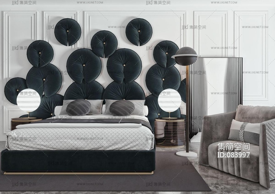 双人床品组合 床头柜 3d模型下载 [模型ID:83997]