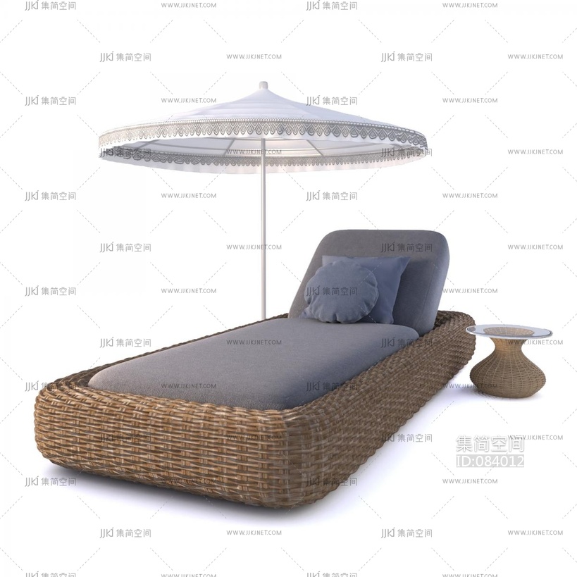 Manutti Kobo太阳椅,藤编编织户外躺椅遮阳伞 3d模型下载 [模型ID:84012]