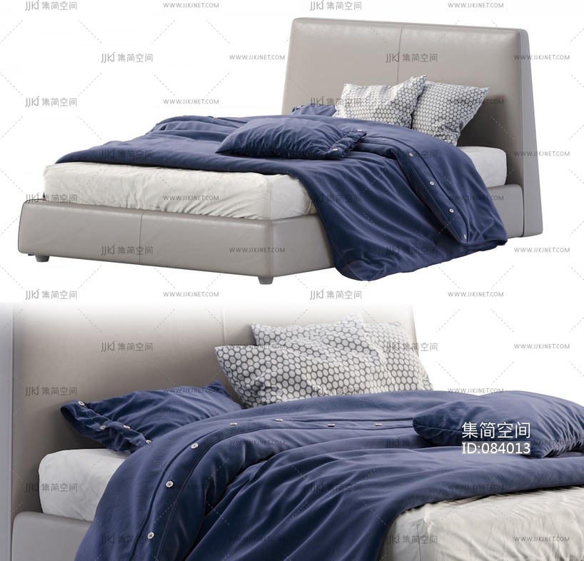 现代皮革双人床 3d模型下载 [模型ID:84013]