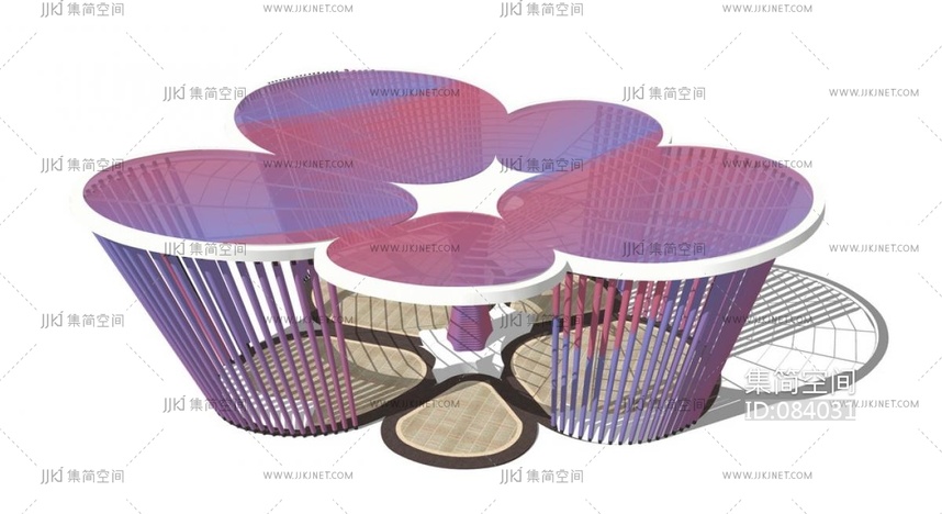 现代彩色花瓣景观亭 su草图模型下载 [模型ID:84031]