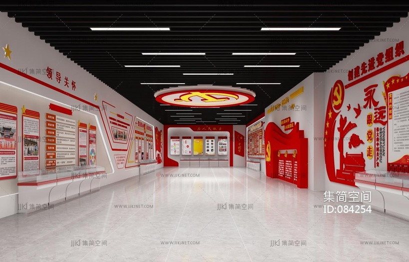 现代党建文化展厅,展馆,展示墙 3d模型下载 [模型ID:84254]