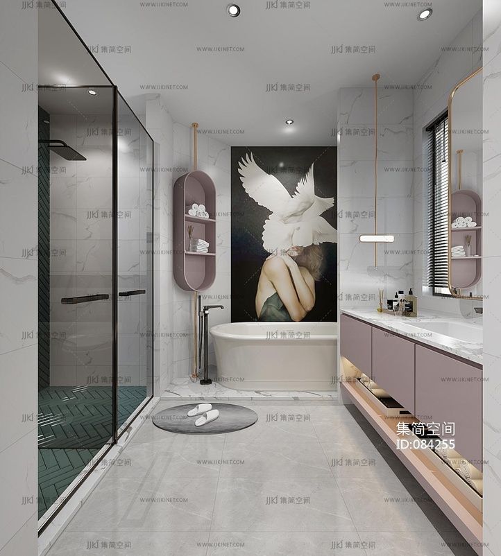 北欧现代卫生间外漏浴缸拖鞋,洗漱卫浴用品 3d模型下载 [模型ID:84255]