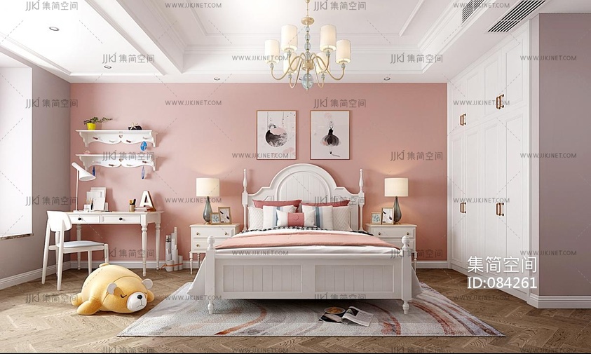 欧式美式女孩房,女儿房,公主房, 3d模型下载 [模型ID:84261]
