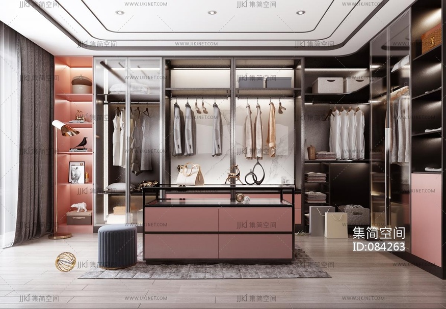 现代衣帽间,衣柜衣服 3d模型下载 [模型ID:84263]