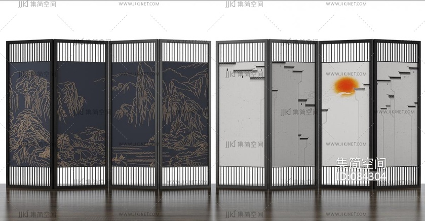 新中式日式花格屏风隔断组合 3d模型下载 [模型ID:84304]