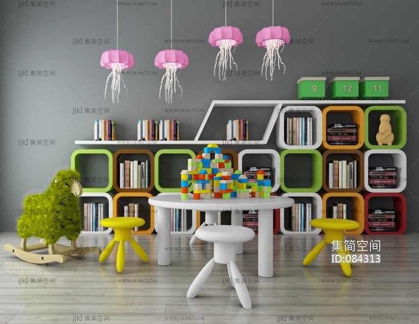 儿童桌椅绵阳座椅摇椅书架水母造型吊灯 3d模型下载 [模型ID:84313]