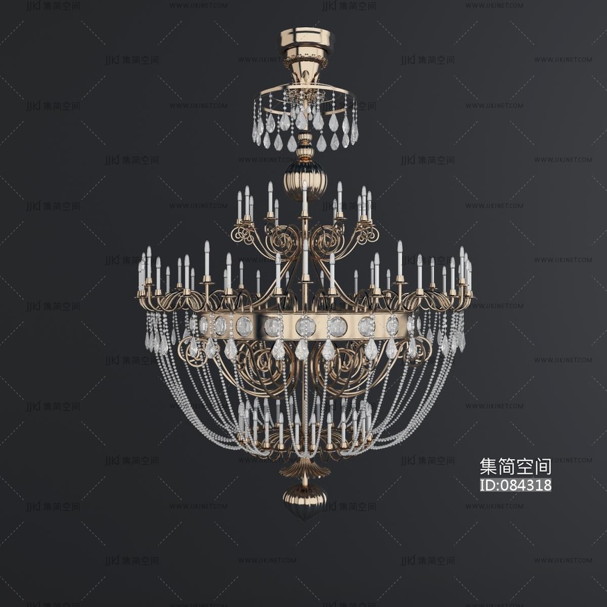欧式法式铁艺水晶吊灯 3d模型下载 [模型ID:84318]