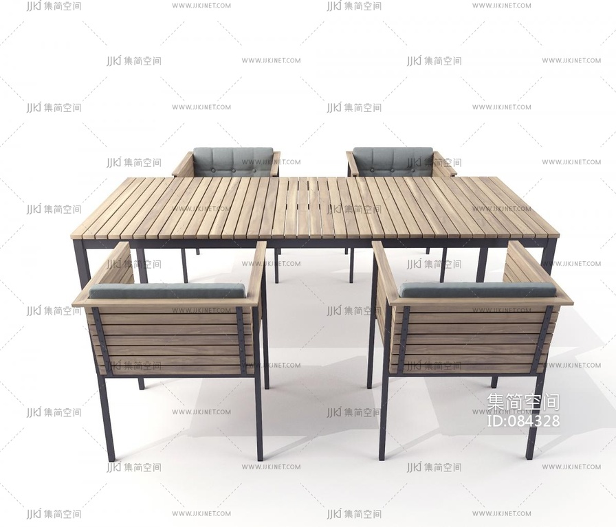 室外户外实木餐桌椅, 3d模型下载 [模型ID:84328]