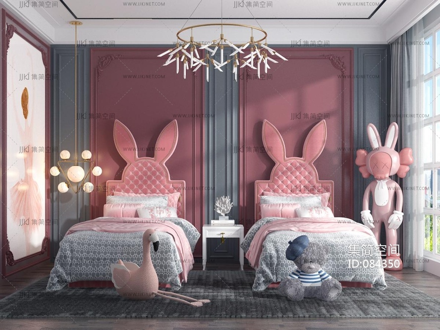 简欧欧式儿童房 3d模型下载 [模型ID:84350]