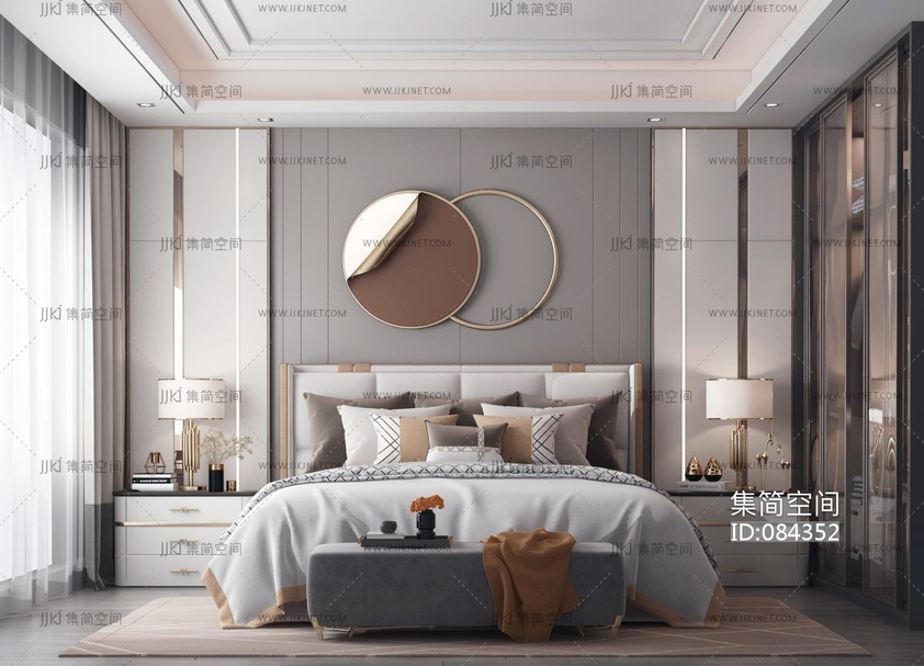 现代轻奢简欧式卧室 3d模型下载 [模型ID:84352]