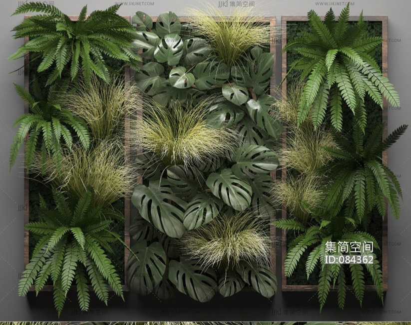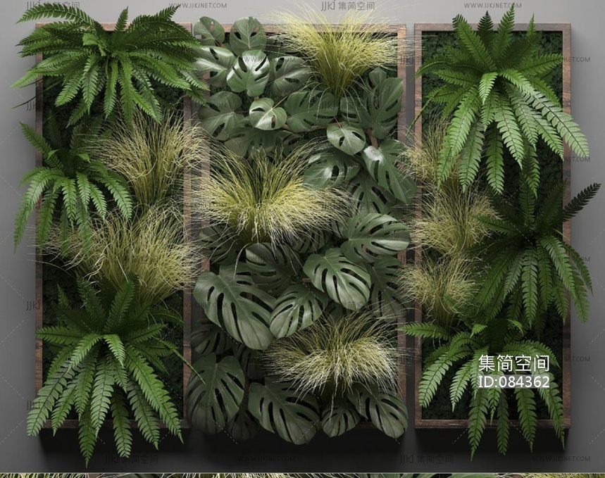现代绿植墙,植物墙,吊装植物 3d模型下载 [模型ID:84362]