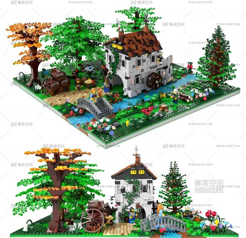 乐高儿童玩具河流小镇玩具树 3d模型下载 [模型ID:84413]