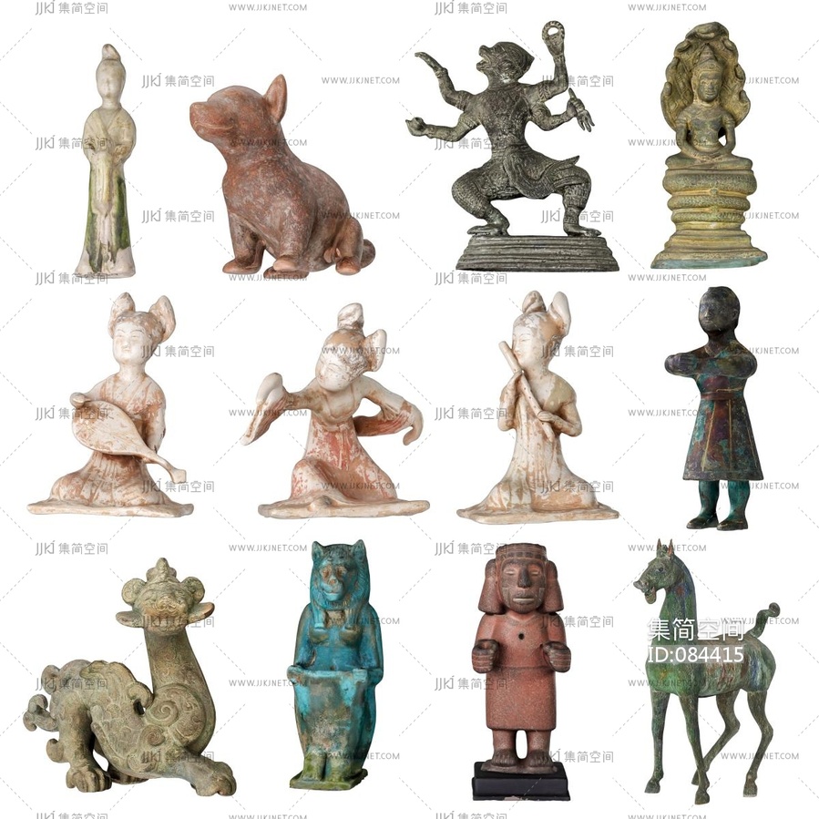 古董套餐雕塑佛头佛像文物摆件组合 3d模型下载 [模型ID:84415]