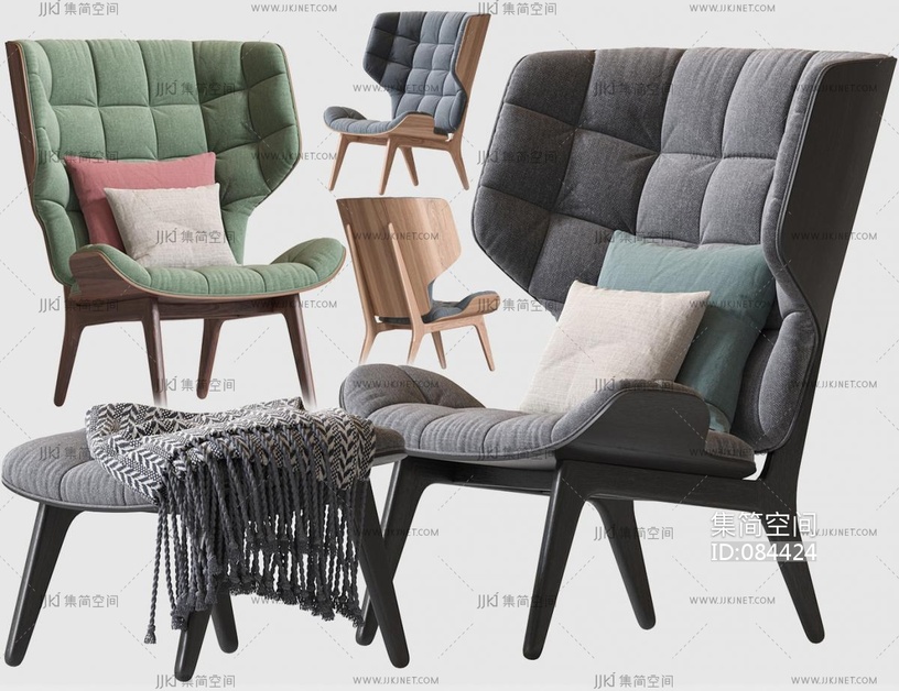 布艺休闲椅,单椅椅子 3d模型下载 [模型ID:84424]