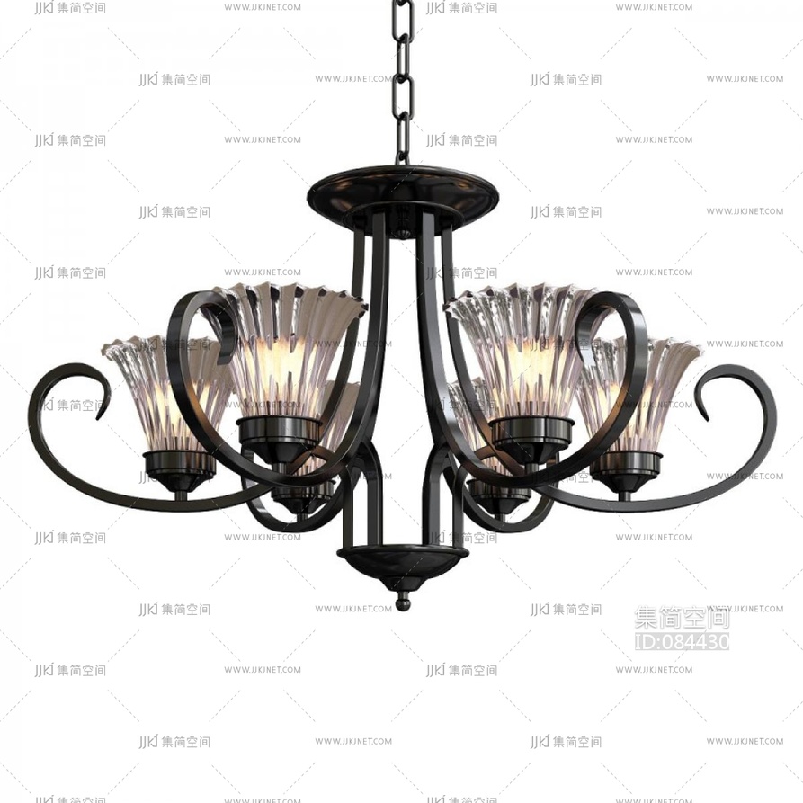 欧式玻璃美式铁艺吊灯 3d模型下载 [模型ID:84430]