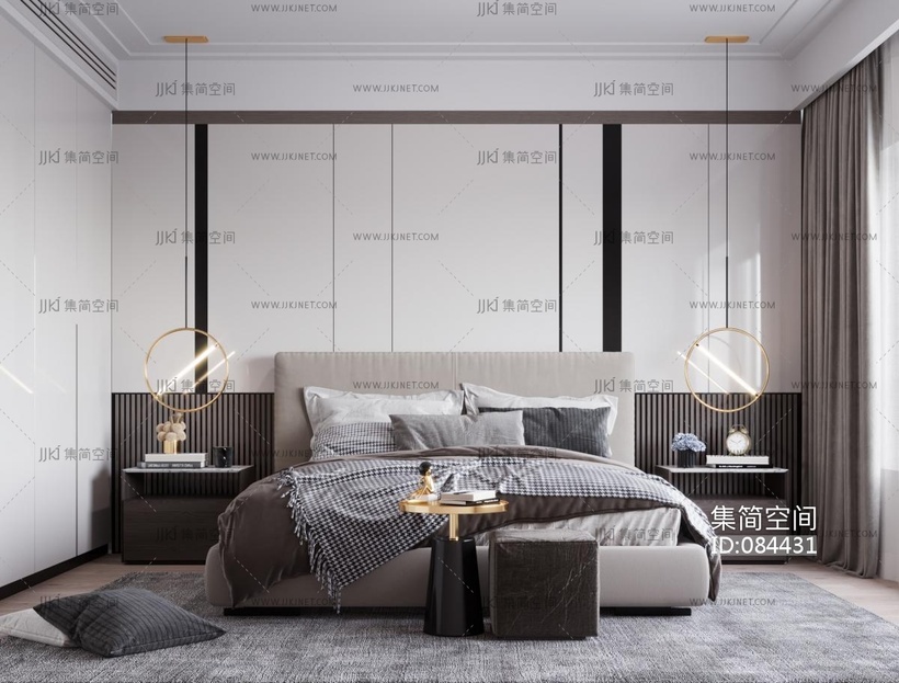 轻奢卧室,双人床,床头柜 3d模型下载 [模型ID:84431]