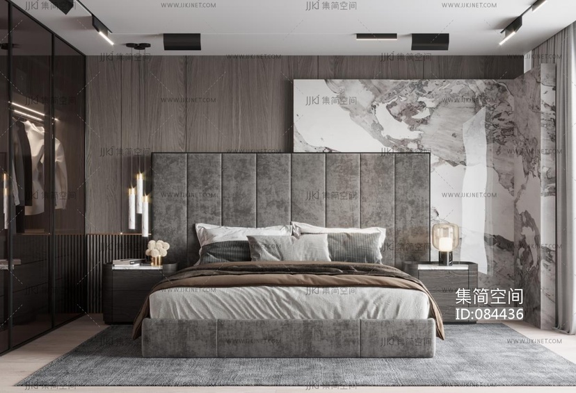 轻奢卧室双人床床头柜衣柜 3d模型下载 [模型ID:84436]
