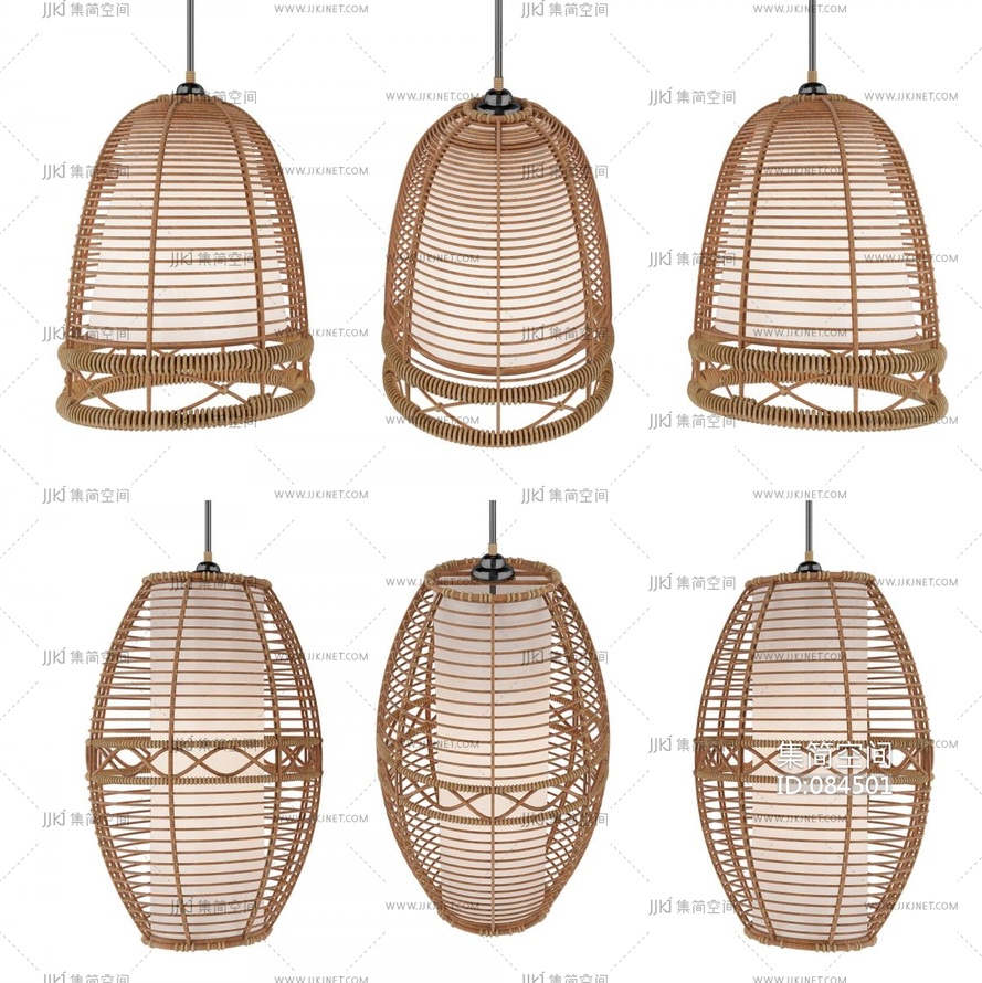 新中式日式民宿,自然风编织藤编吊灯 3d模型下载 [模型ID:84501]