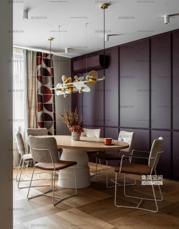 北欧现代餐厅,餐桌椅,异形吊灯 3d模型下载 [模型ID:84526]