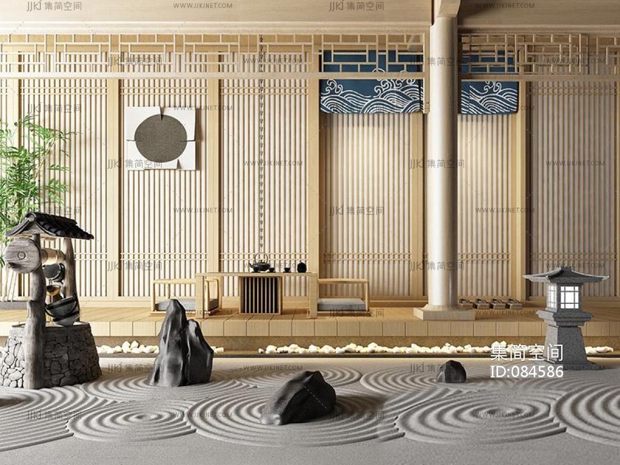 庭院景观,枯山水,水井,石头庭院石头落地灯 3d模型下载 [模型ID:84586]