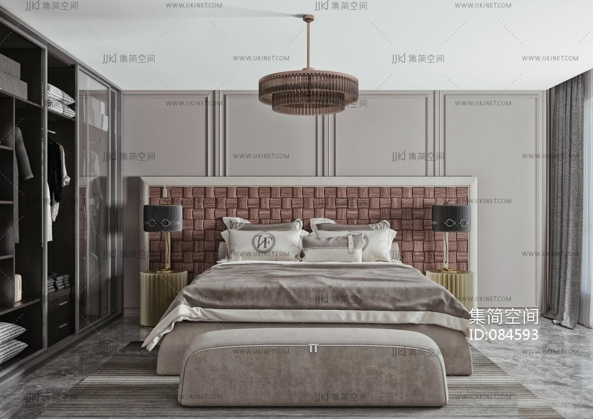 现代卧室,双人床,无光 3d模型下载 [模型ID:84593]