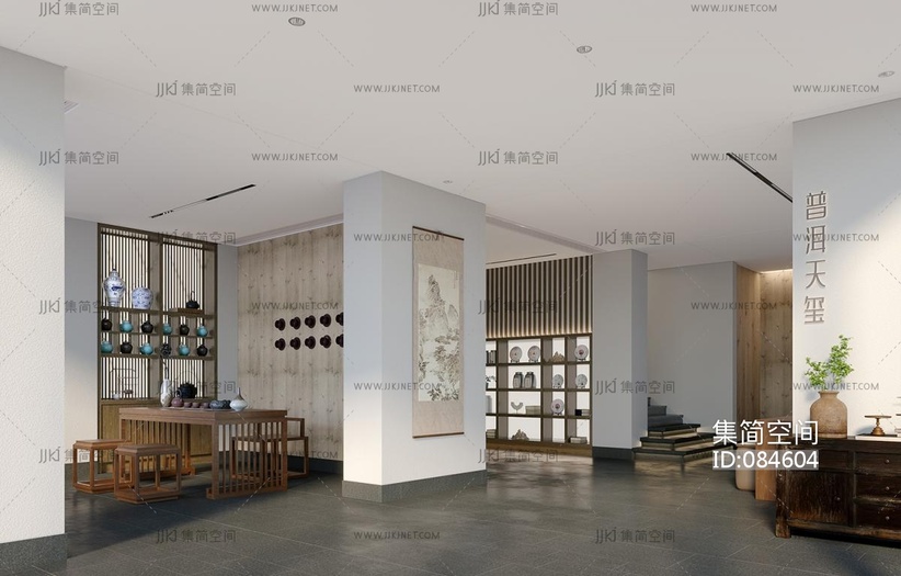 新中式茶叶店,茶室, 3d模型下载 [模型ID:84604]