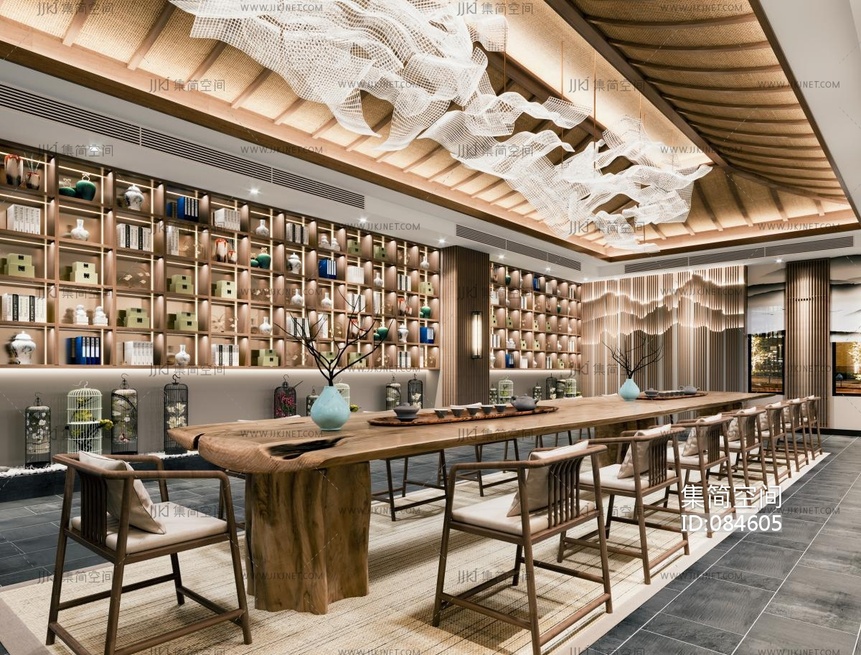 新中式酒店会所茶室 3d模型下载 [模型ID:84605]