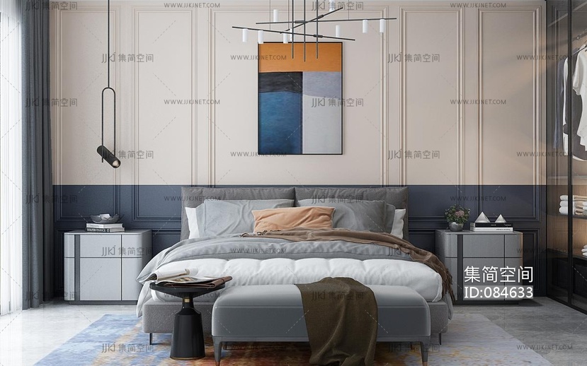 现代简约卧室双人床 3d模型下载 [模型ID:84633]