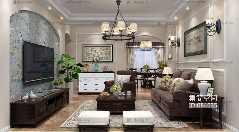 美式地中海田园客厅 3d模型下载 [模型ID:84635]