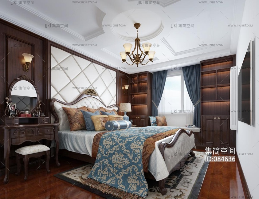 美式欧式法式卧室,双人床梳妆台 3d模型下载 [模型ID:84636]