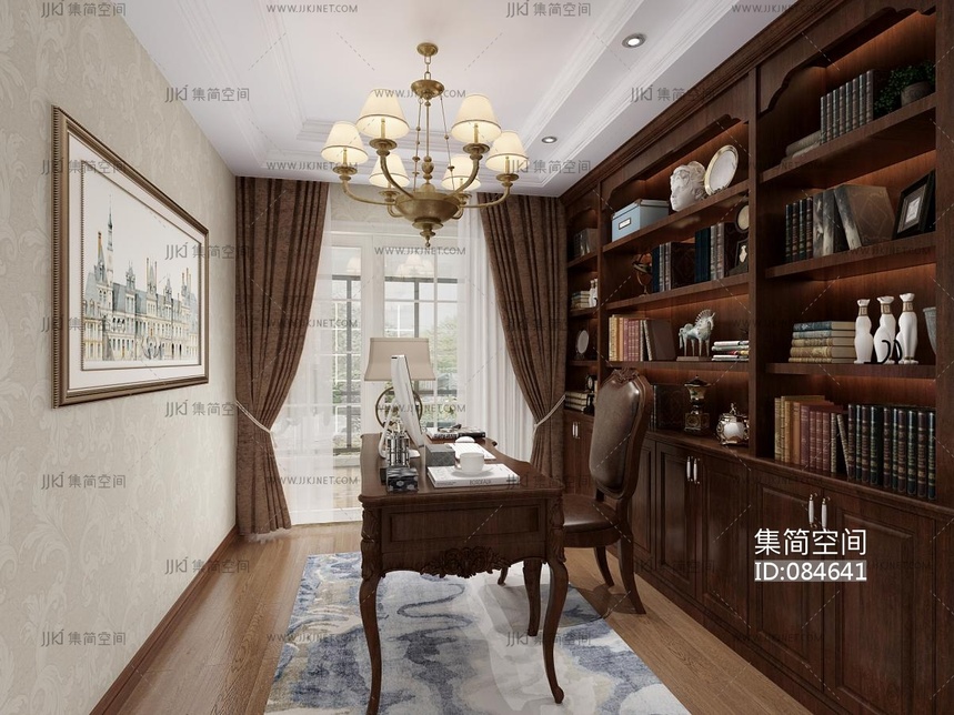 美式欧式书房,书柜书桌椅 3d模型下载 [模型ID:84641]