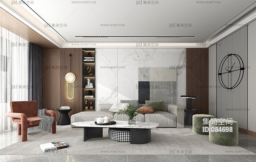 客厅皮革绒布沙发茶几单人沙发 3d模型下载 [模型ID:84698]