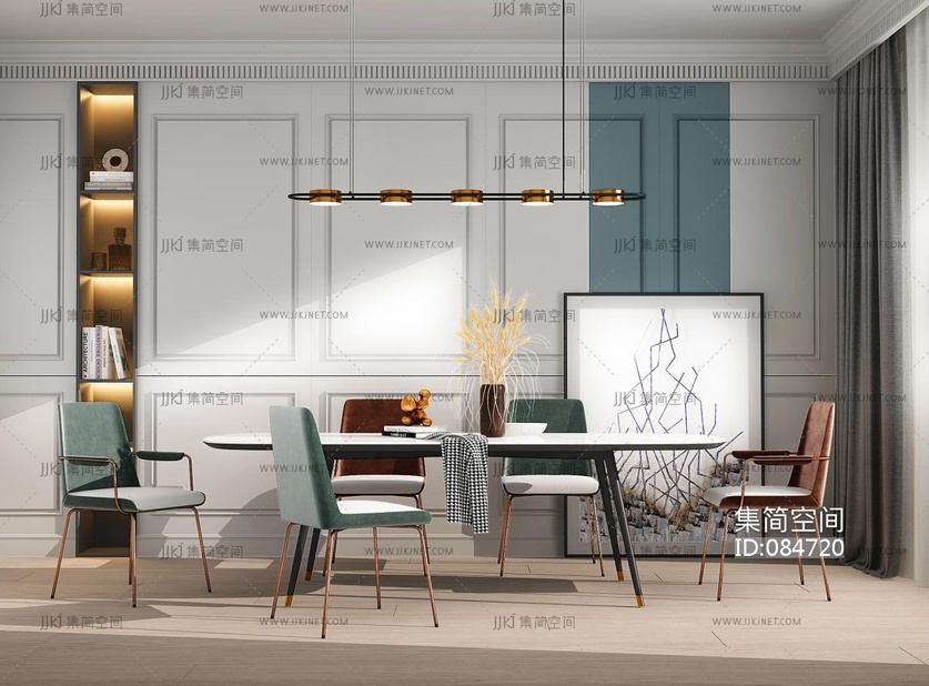 北欧现代餐厅,餐桌椅 3d模型下载 [模型ID:84720]