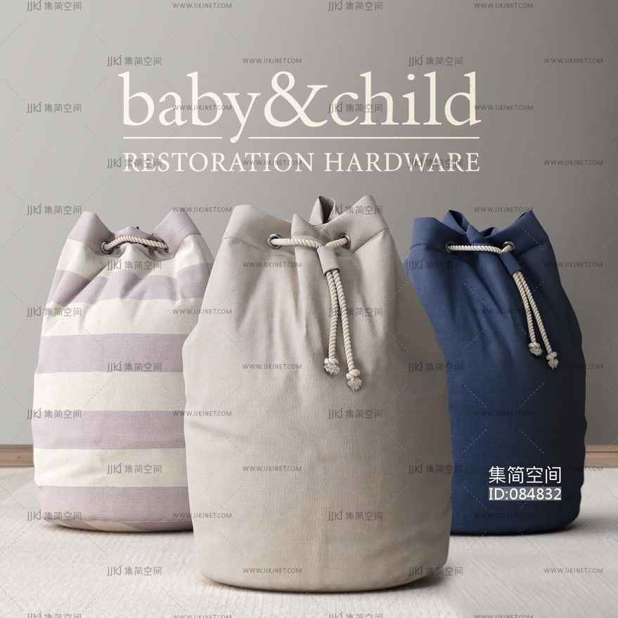 现代儿童洞洞板_置物架挂衣钩,换鞋凳层板摆件3d模型下载