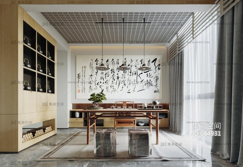 新中式侘寂茶室3D模型3d模型下载