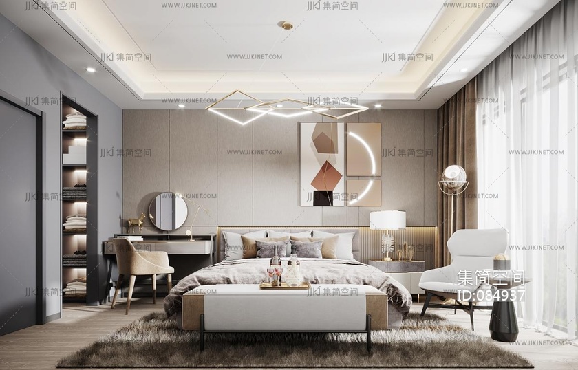 现代卧室,毛绒地毯, 3d模型下载 [模型ID:84937]