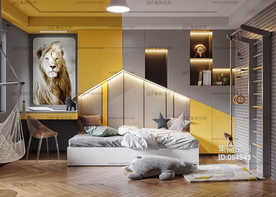 现代北欧儿童房,吊椅 3d模型下载 [模型ID:84943]