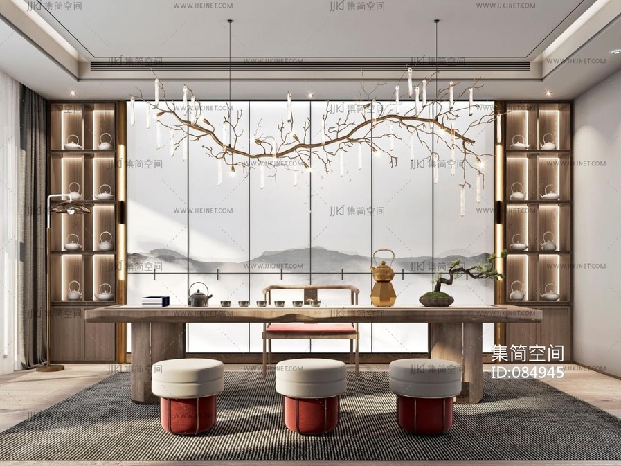 新中式茶室,茶桌椅 3d模型下载 [模型ID:84945]