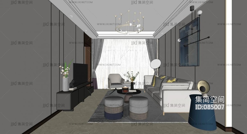 现代客厅 su草图模型下载 [模型ID:85007]