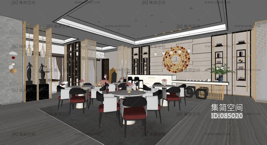 新中式售楼处接待区,洽谈区 su草图模型下载 [模型ID:85020]