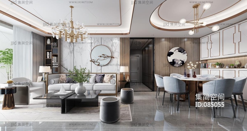 新中式客餐厅, 3d模型下载 [模型ID:85055]