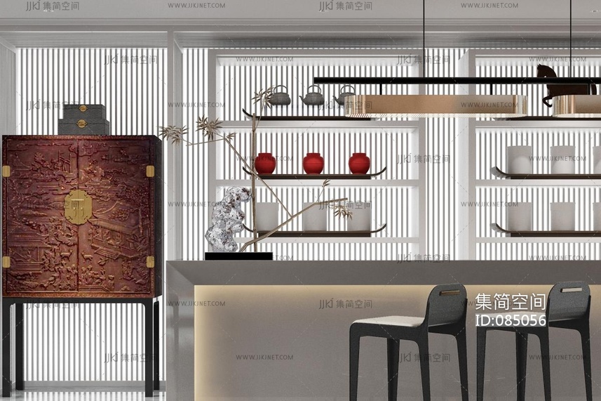 新中式吧台吧台椅水吧台服务台装饰柜 3d模型下载 [模型ID:85056]