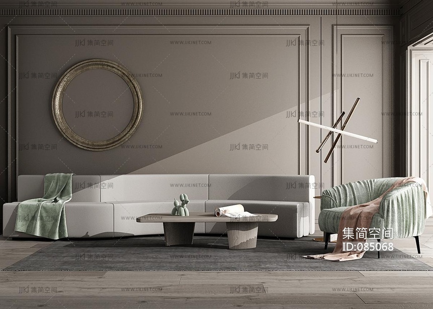 03-奶油中古沙发组合_沙发茶几组合_异形沙发_金属茶几_单人休闲椅_模块沙发3D模型3d模型下载