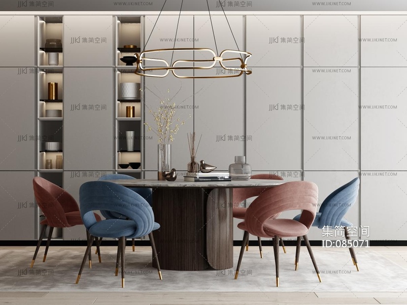 现代餐桌椅,异形金属吊灯 3d模型下载 [模型ID:85071]