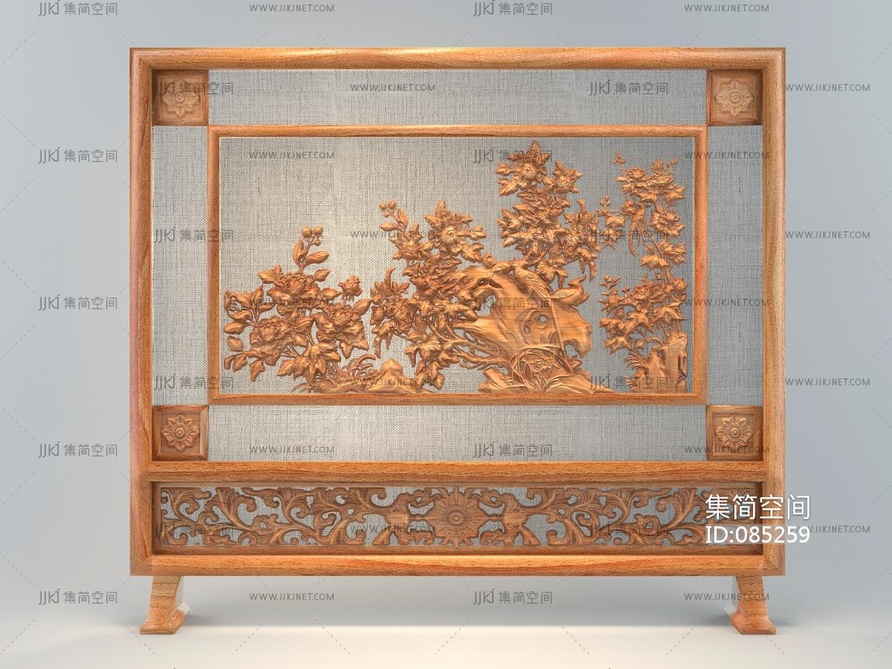 新中式实木雕花屏风, 3d模型下载 [模型ID:85259]