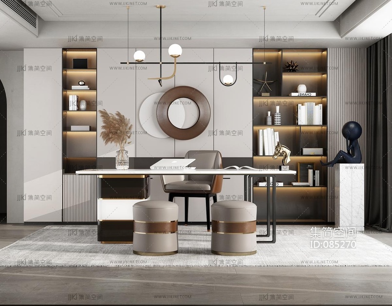 书房,书桌椅书柜 3d模型下载 [模型ID:85270]