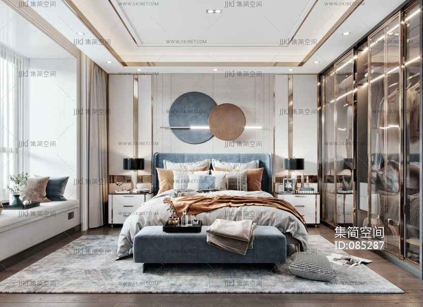 轻奢简欧式主卧室 3d模型下载 [模型ID:85287]