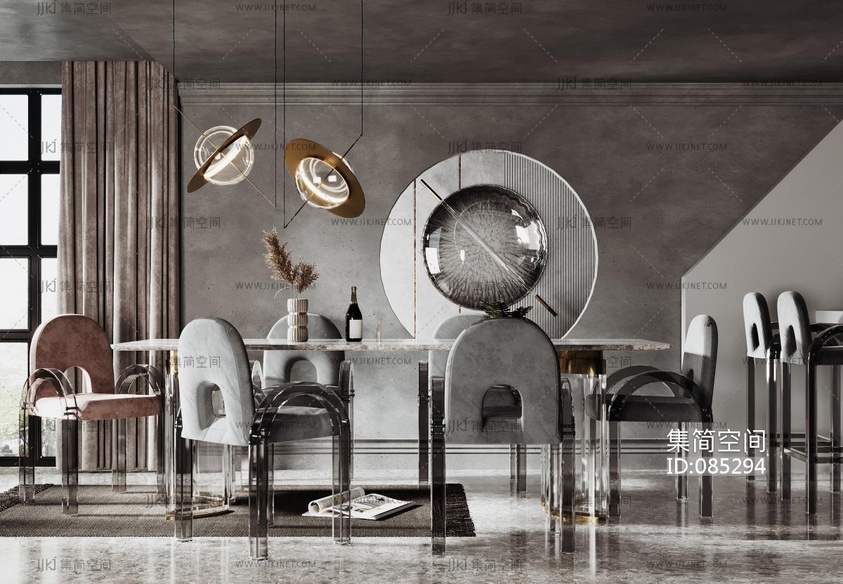 现代餐厅,餐桌椅, 3d模型下载 [模型ID:85294]