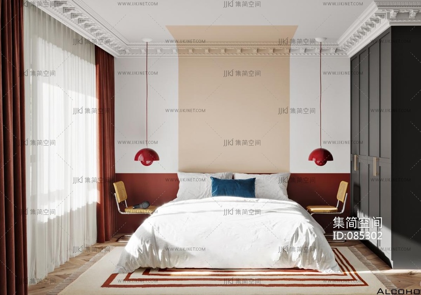 法式轻奢复古卧室,双人床 3d模型下载 [模型ID:85302]