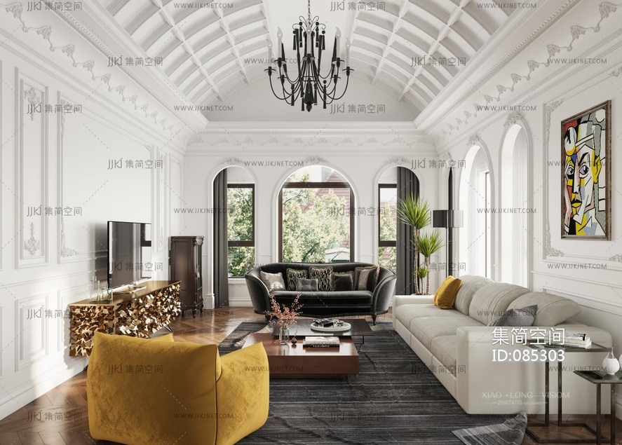 欧式法式客厅, 3d模型下载 [模型ID:85303]